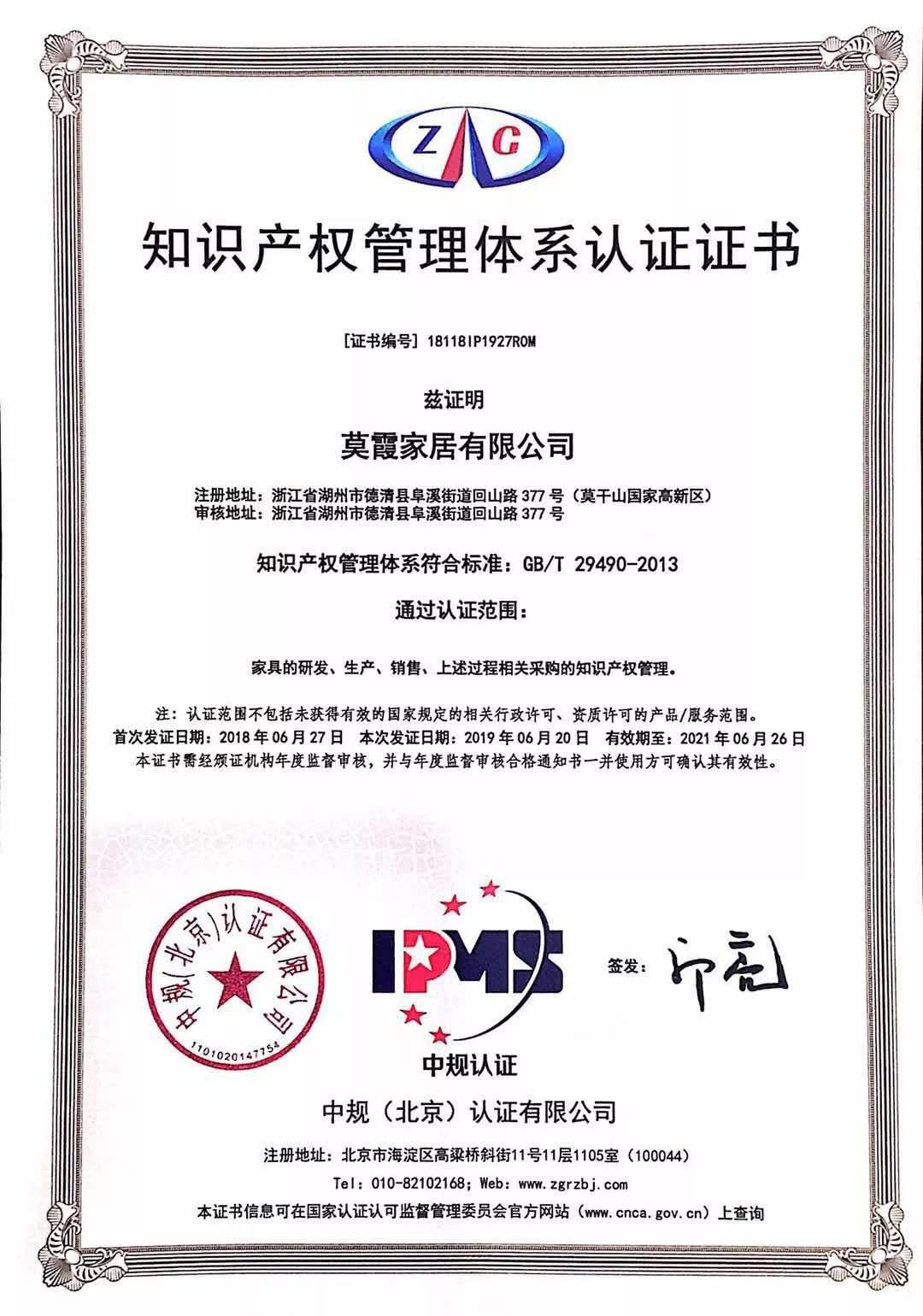 通過瞭(le)知識産(chǎn)權管理體系認證。