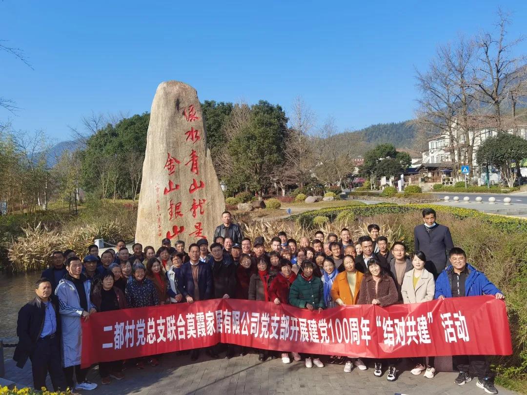 以慶祝建黨100周年爲契機,持續推進基層(céng)黨建質量提升,2021年12月5日莫霞家居有限公司黨支部在書記莫惠明的帶領下聯合二都村黨總支開展建黨100周年“結對共建”活動。此次活動安排前往安吉縣【餘村】和【魯家村】參(cān)觀學習,感受美麗鄉村建設。